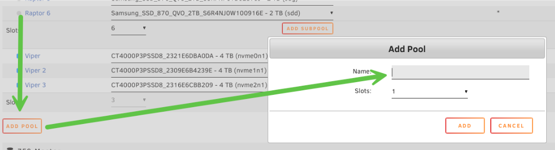- Ejemplo: Para un pool con un vdev espejado de 4 unidades y un vdev L2ARC de 2 unidades, configure 6 ranuras y asigne las seis unidades.